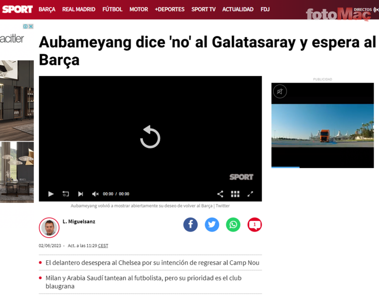 Sport’un haberine göre;Galatasaray’ın Aubameyang’a teklif yaptığı, ancak Gabonlu golcünün bu teklifi geri çevirdiği öğrenildi.Aubameyang’ın teklifi reddetmesinin nedeni ise eski kulübü Barcelona’ya geri dönmek istemesi.Haberde; 33 yaşındaki yıldızın, Katalan ekibine dönmeye hazır olduğunu Barcelona teknik direktörü Xavi Hernandez’e söylediği belirtildi.